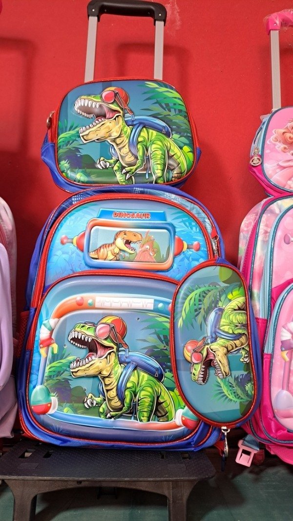 SUPER OFERTA Mochila CARRO con LUCES + lunchera + cartuchera DINOSAURIO